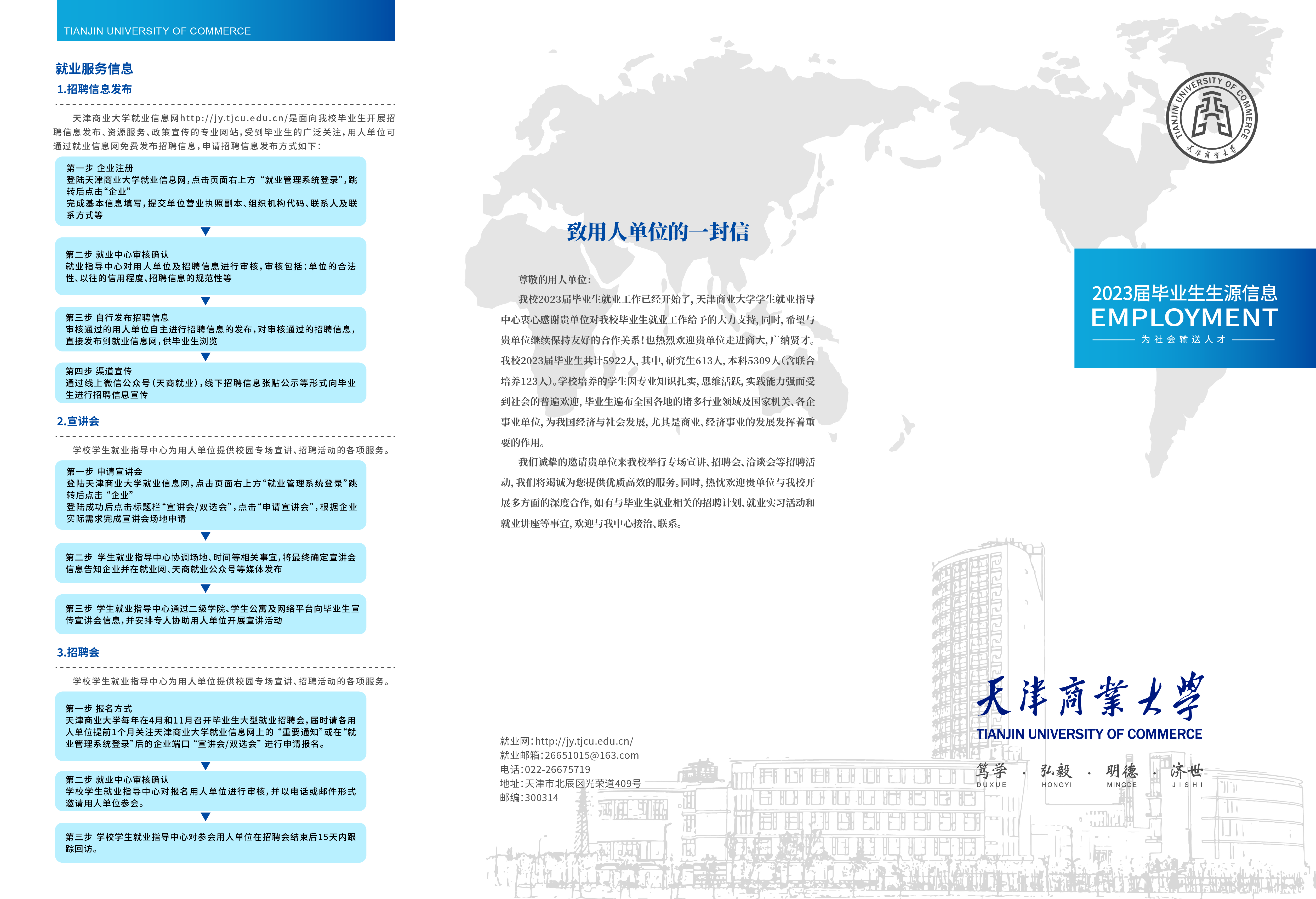 金秋已过,渐入暖冬,秋招也即将接近尾声,但求职与招聘的热度尚未冷却。为了促进毕业生高质量的充分就业,我校将举办“校园招聘月”系列活动之天津商业大学2023届毕业生第二场线上双选会,诚邀全国各地企业报名参加。愿此次双选会能够搭建起企业与学生沟通的桥梁,促进校企之间的沟通交流,也祝愿各企业能够喜获人才,蒸蒸日上!